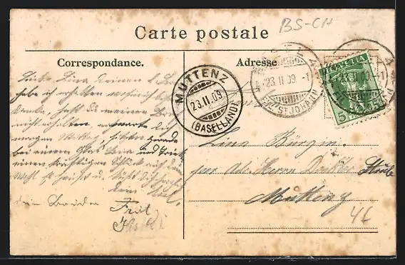 alte Ansichtskarte, gelaufen 1909, guter Zustand