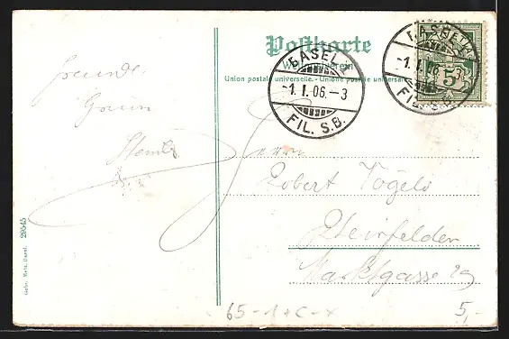 gelaufen 1906, rückseitig Oberflächenschaden, guter Zustand