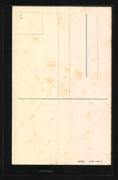 Personenbezogene Daten auf der Rückseite der Karte wurden durch blauen Textmarker unkenntlich gemacht. Die blauen Stellen sind auf die Vorderseite durchgeweicht und wirken sich negativ auf das Postkartenfoto aus