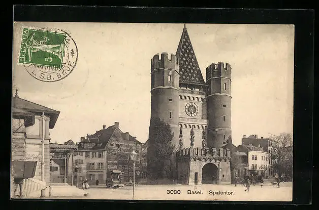 AK Basel, Strassenbahn am Spalentor