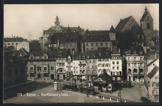 AK Basel, Strassenbahn auf dem Barfüsserplatz