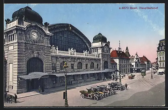 AK Basel, Strassenbahn vor dem Hauptbahnhof