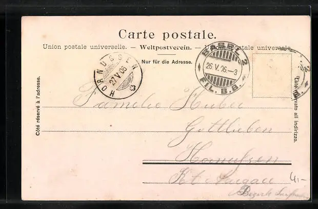 gelaufen 1906, Briefmarke entfernt, guter Zustand