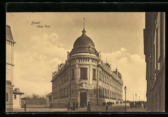 AK Basel, Strassenpartie an der neuen Post