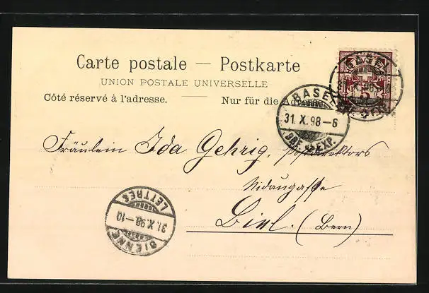 alte Ansichtskarte, gelaufen 1898, Stempelspur, guter Zustand