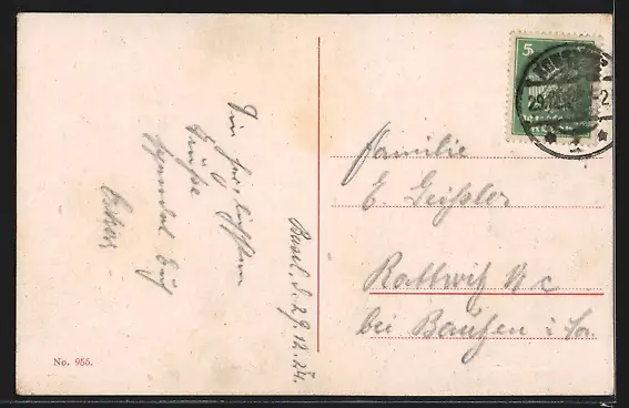 alte Ansichtskarte, gelaufen 1924, Stempelspur, Bugspur re. unten, guter Zustand