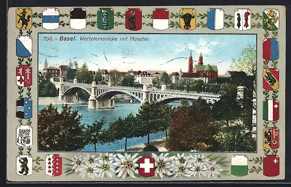 AK Basel, Wettsteinbrücke mit Münster