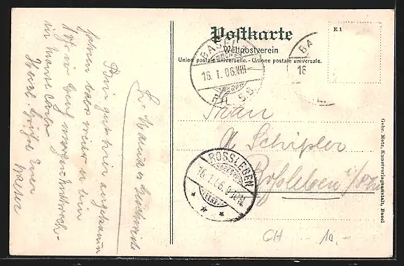 alte Ansichtskarte, gelaufen 1906, Briefmarke entfernt, guter Zustand