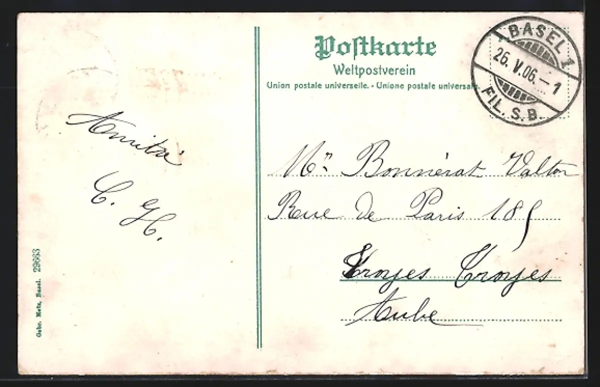 alte Ansichtskarte, gelaufen 1906, Eckknick li. unten, guter Zustand