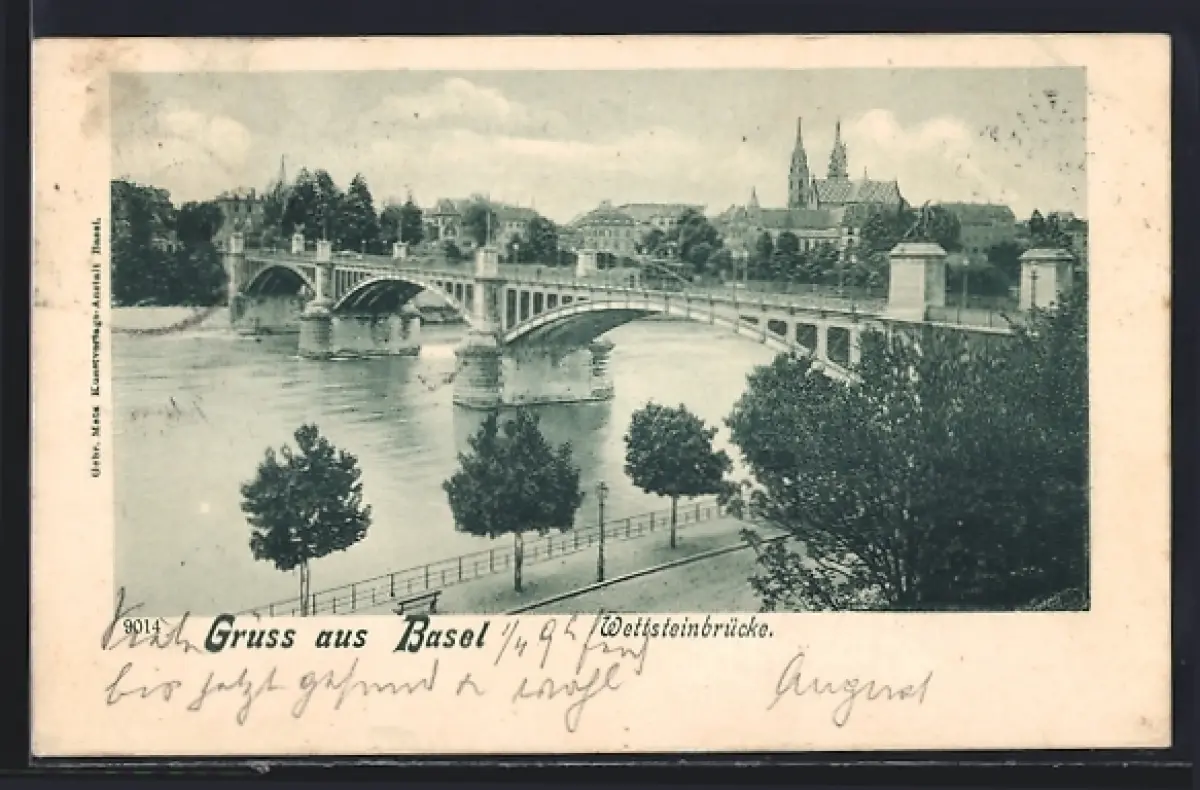 AK Basel, Wettsteinbrücke mit Strassenbahn