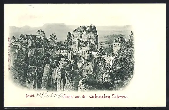AK Bastei /Sächsische Schweiz, Blick auf die Bastei