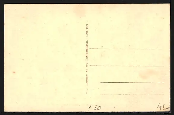 Personenbezogene Daten auf der Rückseite der Karte wurden durch blauen Textmarker unkenntlich gemacht. Die blauen Stellen sind auf die Vorderseite durchgeweicht und wirken sich negativ auf das Postkartenfoto aus