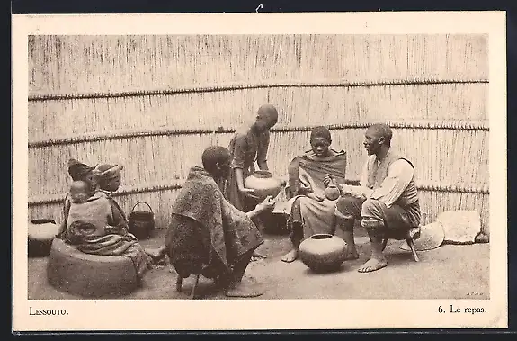 AK Basutoland, Native Live, Einwohner begutachten Tongefässe