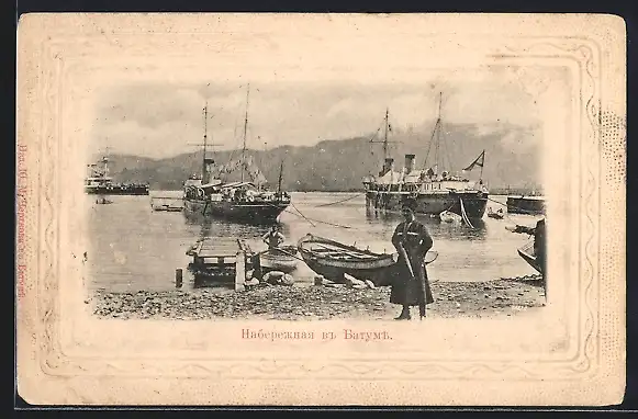 AK Batumi, Hafenansicht mit Booten und Person am Ufer