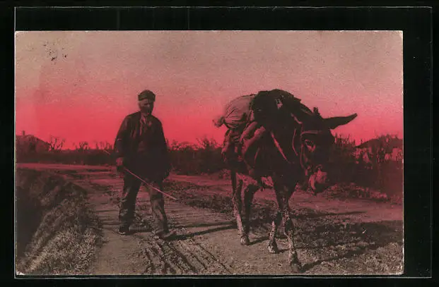 AK Bauer mit einem bepacktem Esel auf einer Strasse