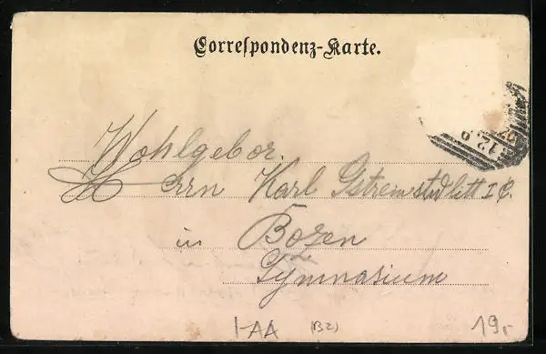 alte Ansichtskarte, gelaufen 1898, Briefmarke entfernt, rückseitig Oberflächenschaden, Eckknicke li. u. re., guter Zustand