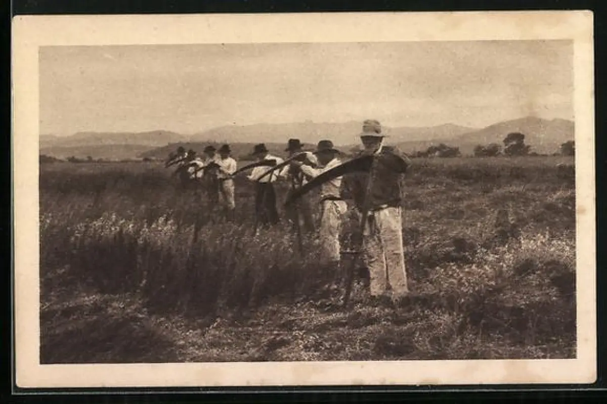 AK Bauern mit der Handsense bei der Arbeit auf dem Feld