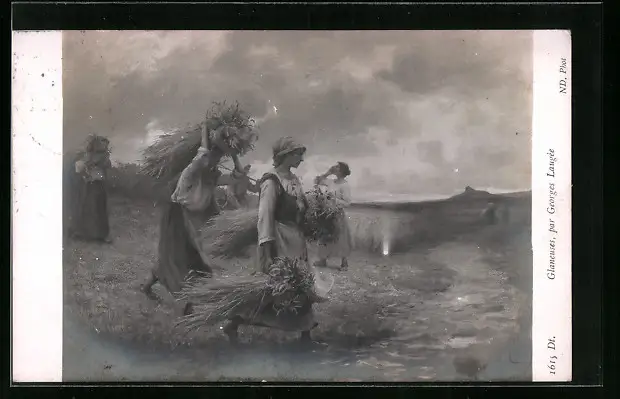 AK Bauersfrauen mit Garben am Abend