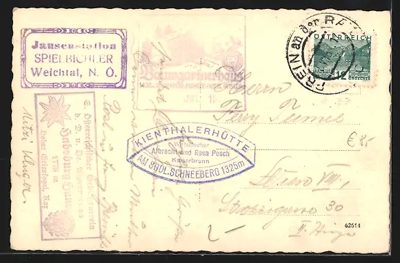 AK Baumgartnerhaus Schneeberg mit Wanderern