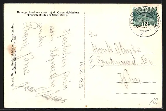 AK Baumgartnerhaus am Schneeberg im Winter