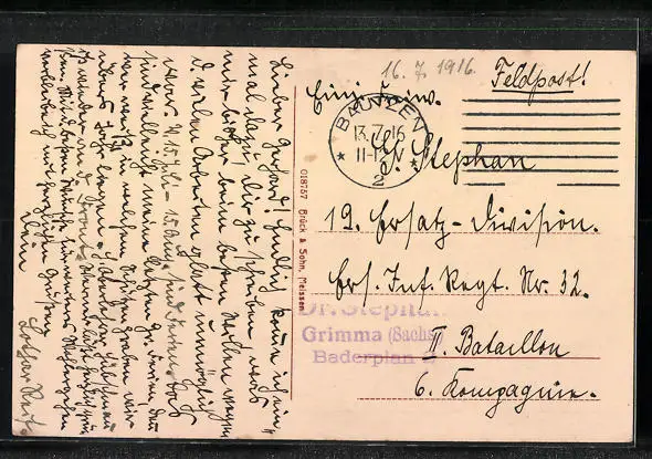 gelaufen als Feldpost 1916, guter Zustand