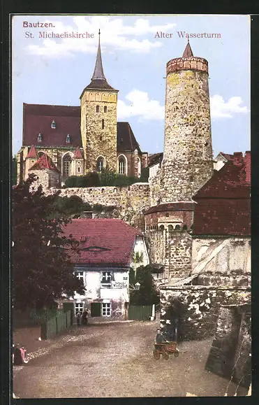 AK Bautzen, St. Michaeliskirche und alter Wasserturm