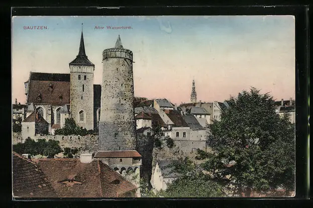 AK Bautzen, Teilansicht mit altem Wasserturm