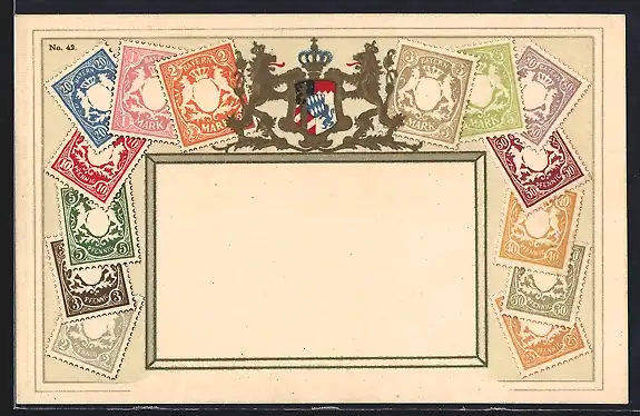 AK Bayern, Briefmarken mit Wappen, um 1900