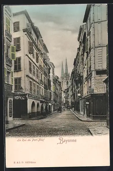 AK Bayonne, La Rue du Port-Neuf, Strassenpartie
