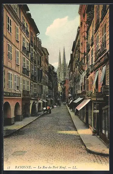 AK Bayonne, La Rue du Port Neuf, Strassenpartie