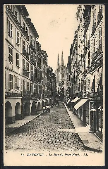 AK Bayonne, La Rue du Port Neuf, Strassenpartie