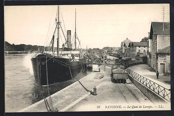 AK Bayonne, Le Quai de Lesseps, Hafen