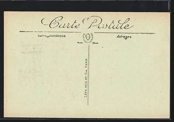 Personenbezogene Daten auf der Rückseite der Karte wurden durch blauen Textmarker unkenntlich gemacht. Die blauen Stellen sind auf die Vorderseite durchgeweicht und wirken sich negativ auf das Postkartenfoto aus