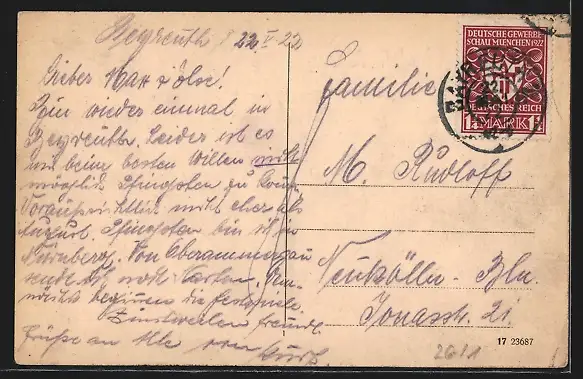 alte Ansichtskarte, gelaufen 1922, Eckknick li. oben, guter Zustand