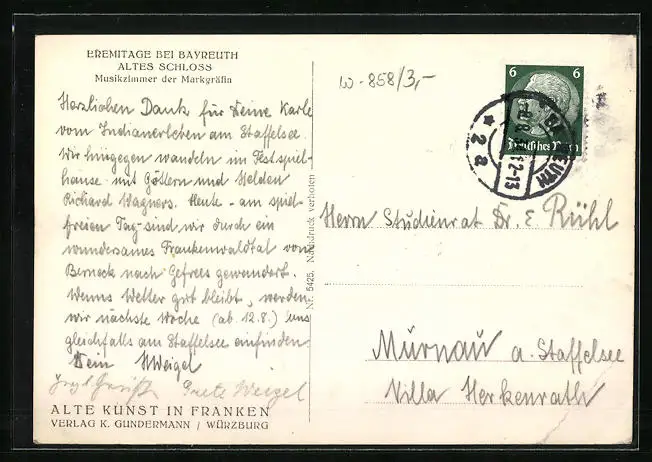 alte Ansichtskarte, gelaufen 1934, Eckknicke li., guter Zustand