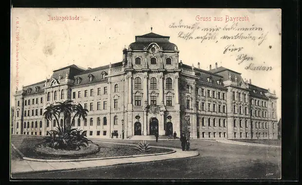 Personenbezogene Daten auf der Rückseite der Karte wurden durch blauen Textmarker unkenntlich gemacht. Die blauen Stellen sind auf die Vorderseite durchgeweicht und wirken sich negativ auf das Postkartenfoto aus