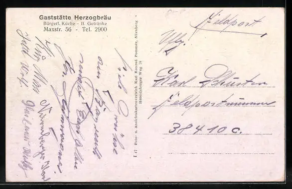 AK Bayreuth, Gasthaus Herzogbräu, Maxstrasse 56