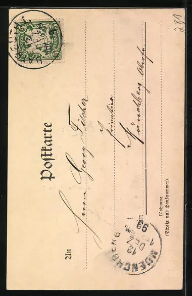 alte Ansichtskarte, gelaufen 1899, Stempelspur, guter Zustand