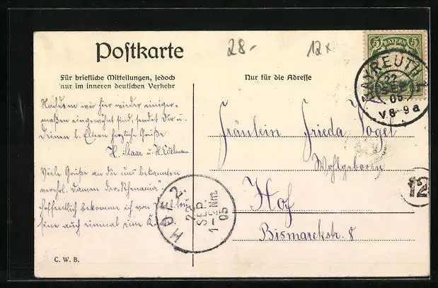 alte Ansichtskarte, gelaufen 1905, Stempelspur, guter Zustand
