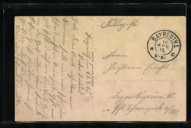 alte Ansichtskarte, gelaufen 1915, Eckknicke unten, Einriss oben re., Stempelspur, guter Zustand