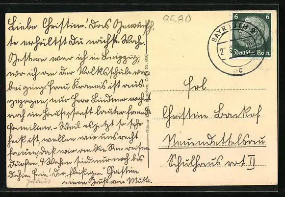 alte Ansichtskarte, gelaufen 1936, Stempelspur, guter Zustand