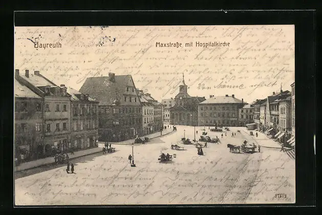 AK Bayreuth, Maxstrasse mit der Hospitalkirche