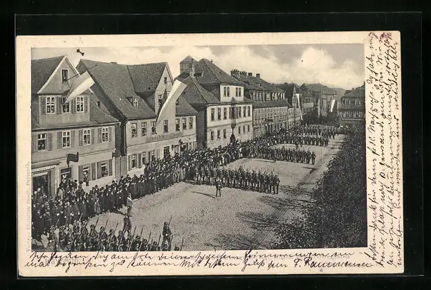 AK Bayreuth, Militärparade mit Publikum aus der Vogelschau