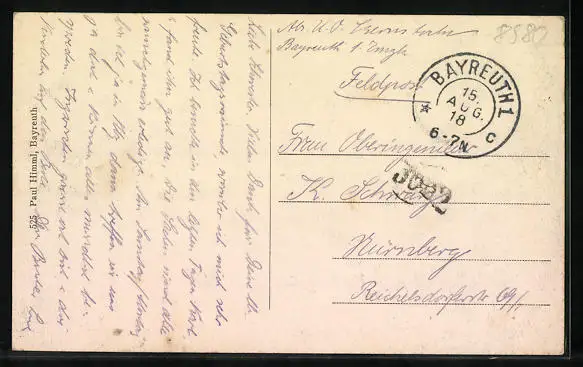 alte Ansichtskarte, gelaufen 1918 als Feldpost, guter Zustand