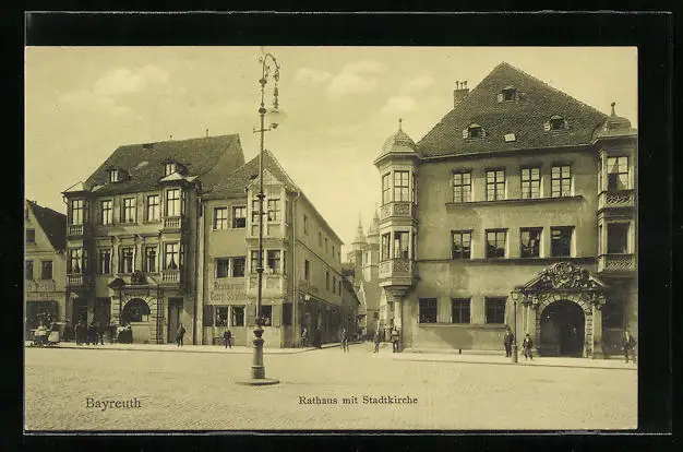AK Bayreuth, Platz vor dem Rathaus mit Stadtkirche