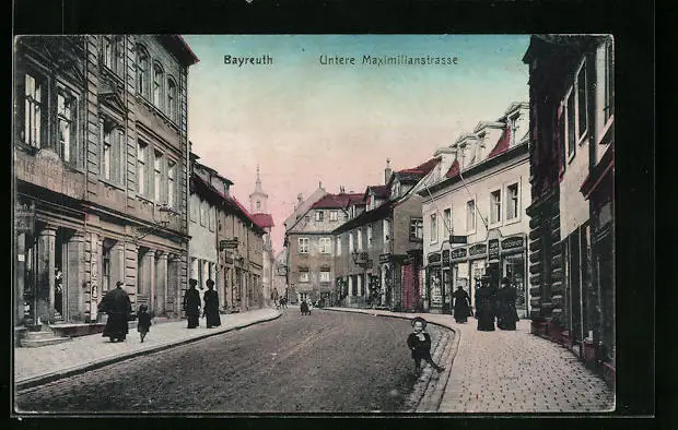 AK Bayreuth, Untere Maximilianstrasse mit Geschäften
