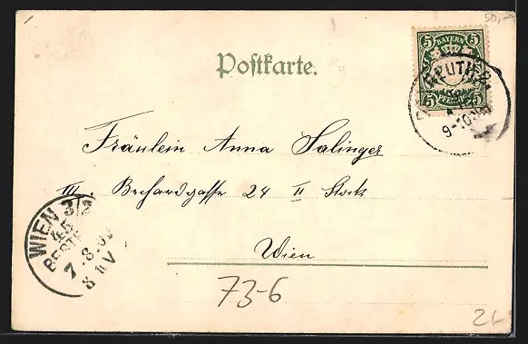 alte Ansichtskarte, gelaufen 1900, guter Zustand