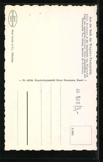 AK Bayreuth, alter Brunnen, Stirner-Haus und Rathaus