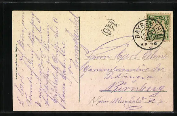 gelaufen 1908, Eckknick rechts oben, guter Zustand