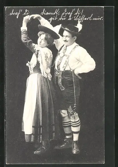 AK Bayrisches Paar in Tracht beim Tanz